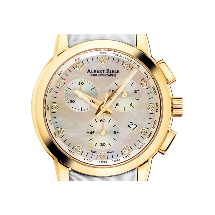 ساعت مچی عقربه‌ای زنانه‌ی «آلبرت ریله» (Albert Riele) مدل «LQ03-SY99D-TW-K1513» از ساعت‌های بسیار شیک‌ و لوکس این برند سوییسی است. این ساعت کلاسیک‌، ویژگی‌های جذاب و البته کارآمدی دارد که زیبایی ساعت را دوچندان کرده است. یکی از این ویژگی‌ها کرنوگراف یا زمان‌سنج است که با دو کلید سمت راست کنترل می‌شود و به موجب آن دو شمارشگر روی صفحه تعبیه شده است. ویژگی دیگر این ساعت بهره بردن از قابلیت سرعت سنج (تاکي متر) است. تاریخ‌شمار هم دیگر قابلیتی است که در کنار زیبایی، کارایی بسیاری دارد و شماره‌ی روزِ ماه را روی صفحه‌ی صدفی ساعت و در موقعیت عدد چهار به تصویر می‌کشد.